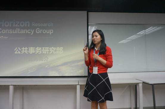 公共事务部高级研究经理乔玲玲给同学们做第三方评估讲座