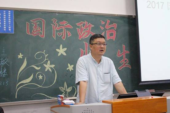 2017年9月9日上午10:00,球王会2017级国际政治专业师生见面会于主教213准时举办。球王会国际政治系主任白云真老师、国际政治系江涛老师、辛平老师、张鹏老师、国际政治17班班主任张云雷老师、17级新生辅导员黄莎老师出席了本次见面会,国际政治17班全体同学到场参加。