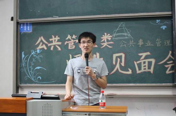 首先,徐焕东老师代表公共事业管理系老师向同学们进入中财表示衷心的祝贺和热烈的欢迎。接着,他对公共事业管理专业做出简要介绍。在教师团队方面,公共事业管理系教师拥有高水平的教学能力、团结民主的工作氛围,可以为同学们提供专业的指导和系统的培养。在专业设置方面,公共事业管理专业在公共管理领域占有重要地位。徐老师指出,在公共事业管理的大背景下,该系以人力资源管理为主要方向,更好地适应、服务社会。在系运行状况方面,公管本科毕业生前景广阔,在读研、留学、就业等方面均有较大优势。在教学目标方面,徐老师强调公共人力资源管理是教导人们发现人才、选拔人才、培养人才,建立良好的人才管理机制的学科。通过例举文王拜姜尚而建西周、秦国用商鞅而兴霸业、高祖任三杰而统天下等史实,徐老师让同学们深切体会到人力资源管理以及公共事业管理的重要作用,引起了大家对该专业浓厚的学习兴趣。