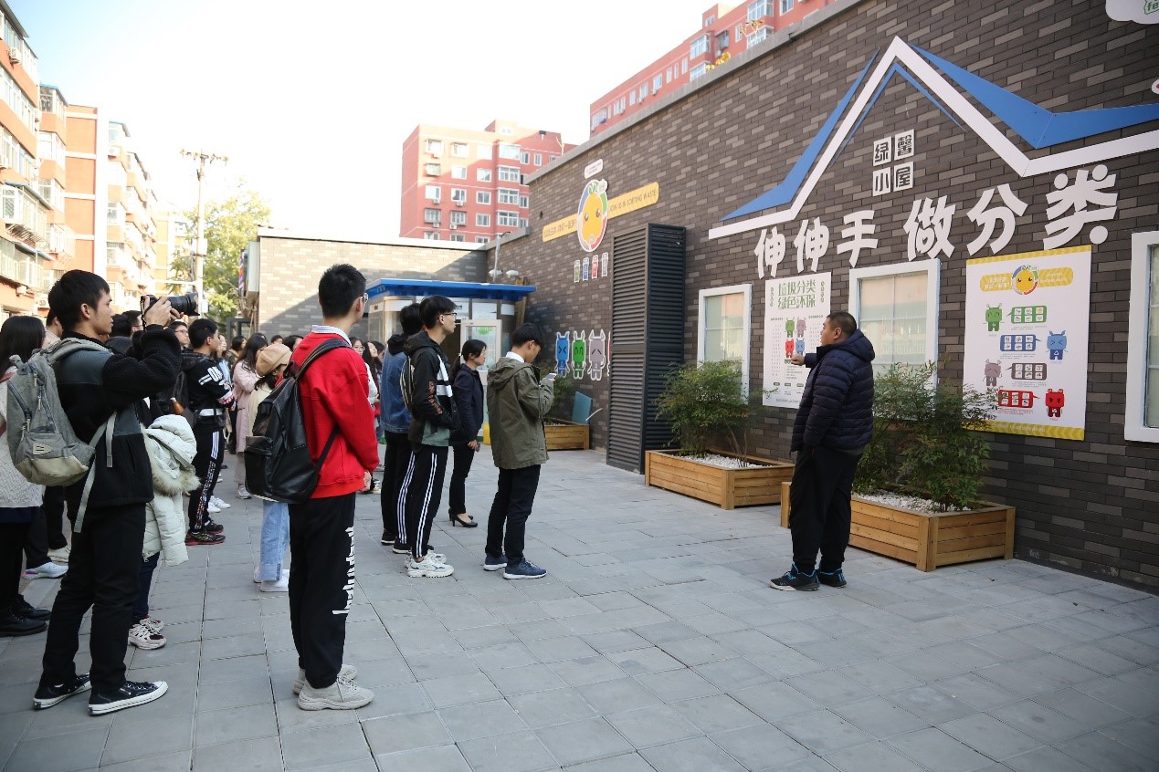师生参观社区垃圾分类点——“绿馨小屋”