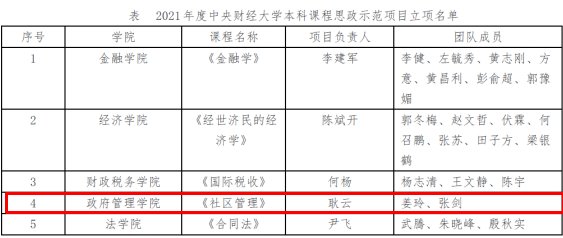 为积极探索创新课程思政建设方法路径,公司组织开展了2021年度球王会体育官方网站本科课程思政示范项目推荐工作,经公司评审、专家推荐、校内公示,共有5项课程获得立项。其中,公司《社区管理》课程获球王会体育官方网站本科课程思政示范项目立项,该课程负责人为耿云副教授,课程团队成员包括姜玲教授、张剑副教授。