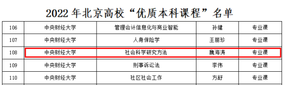 近日,北京市教育委员会先后发布了《北京市教育委员会关于公布2022年北京高等教育本科教学改革创新项目的通知》(京教函〔2022〕395号)和《北京市教育委员会关于公布2022年优质本科课程和优质本科教材课件遴选结果的通知》(京教函〔2022〕394号),其中,公司周湘林副教授主持的教改课题《面向国家治理现代化的财经院校公共事业管理一流本科人才培养体系改革》获得立项;魏海涛副教授主讲的专业课程《社会科学研究方法》获评北京高校“优质本科课程”,并认定为“北京高等公司优秀专业课主讲教师”。