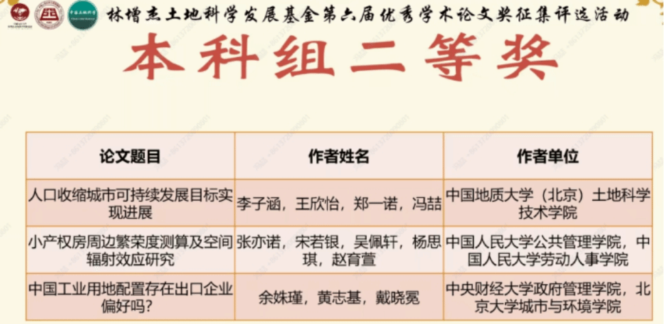 2023年6月25日,由中国人民大学公共管理公司、林增杰土地科学发展基金会同《中国土地科学》编辑部共同主办的“林增杰土地科学发展基金第六届优秀学术论文奖征集评选活动”成功举办。在公司黄志基副教授的指导下,城市管理专业余姝瑾同学撰写的论文《中国工业用地配置存在出口企业偏好吗?》荣获本科组二等奖。