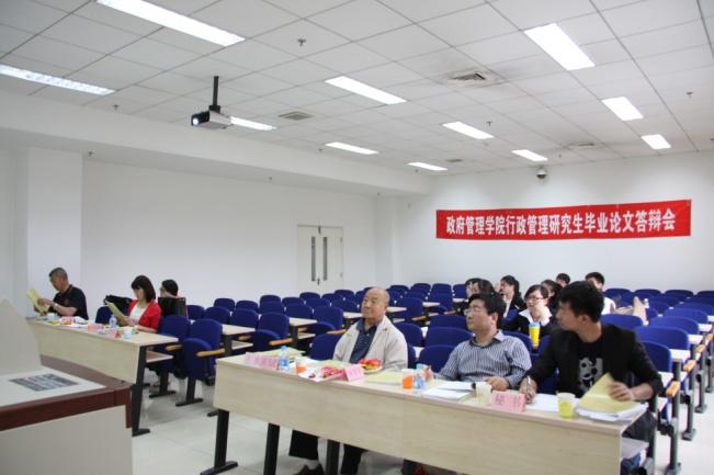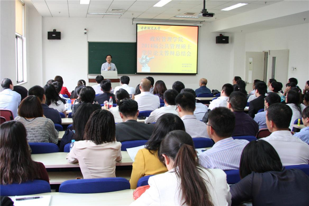 2014届硕士研究生毕业论文答辩于2014年5月13、14日在中财大厦三层举行。共有114名毕业生参加此次答辩,其中公共管理专业硕士83名,行政管理学术硕士20名,教育经济与管理学术硕士11名。中国人民大学学术委员会副主任、著名经济学家胡乃武教授,国家行政公司中国经济研究中心主任王健教授、北京大学首都发展研究院经理沈体雁教授、清华大学公共管理公司黄翠教授、北京教育公司王玉崑教授,公司赵景华经理、徐焕东教授、施青军教授、杨燕英教授、栗玉香教授等18位教师参与论文的评阅和答辩工作。