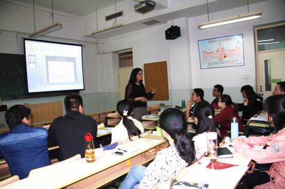 5月26日,RoliVarma教授为球王会博士和硕士研究生开设“Howto Do Research”的专题讲座。Roli Varma教授以学术文章写作为主线,结合目前正在从事的印度IT行业女性劳动力研究案例,介绍了学术科研的基本思路和方法,讲座过程中与同学们互动交流,现场气氛活跃。