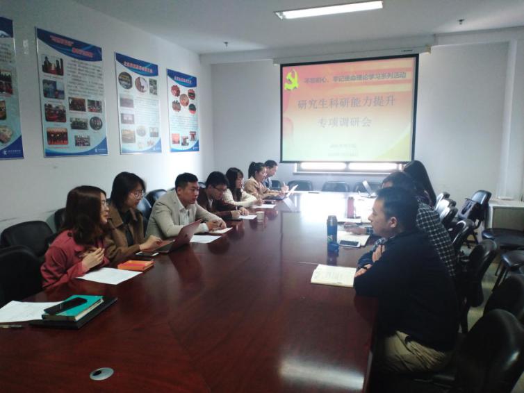 2019年10月18日上午,球王会“不忘初心、牢记使命”理论学习系列活动暨研究生科研能力提升专项调研会在932会议室举行。公司副经理于鹏副教授、MPA教育中心副主任宋魏巍副教授、研究生工作办公室主任张鑫媛老师、研究生教务秘书张肖蒙老师,学术型硕士研究生、MPA和博士生代表参加本次会议。会议由于鹏副经理主持。