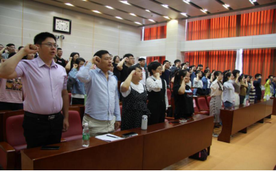 开学典礼最后一个环节为新生入学宣誓,由2019级学术型硕士研究生许雄刚领誓:“谨记中财校训,忠于祖国,服务人民,治学修身,尊师重道,求真务实,开拓创新,勇于担当,追求卓越,以公共管理之学识,成经世济民之良才,以正气浩然上善若水之精神,成中华复兴之伟业”。庄严的宣誓,郑重的誓词,久久回荡在员工心中。最后,参与开学典礼的全体师生在学术会堂前合影留念。