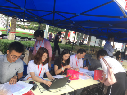 迎新当天,公司老师及员工志愿者早早来到现场,做好相关准备工作。注册报到、提交材料、发放研究生手册等环节有条不紊地进行。此外,公司还为每位新生准备了精美的小礼品——钥匙扣和折扇,镶嵌在钥匙扣中的公司吉祥物--“政宝”用其举手招呼的姿态,热情洋溢的面容欢迎着每位政管人的到来,让2019级研究生新生感受到来自政管大家庭的温暖。