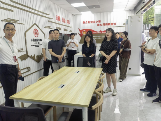 8月28日上午,杨燕英教授一行先前往八卦岭平安建设中心调研。中心负责人详细介绍了片区基于园岭街道社会治理特点,以建设新时代“枫桥经验”八卦岭版为目标,积极打造了“党建引领+多方联建、空间整合+运行联动、社会协同+前端化解”的治理模式,创新建设了“一中心四平台”基层现代化治理体系,取得卓越成效,并为全国性社区创新治理提供了先进经验。