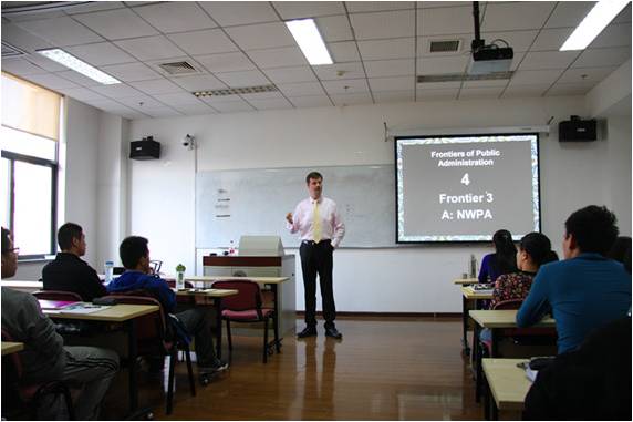 Drechsler教授以全球化公共管理发展趋势、公共管理研究方法、非西方公共管理思想概述、中国儒家公共管理思想、电子政务为题,为2013级博士生和硕士生进行了五次专题讲座。讲座中,Drechsler教授为员工们梳理了1963年至2013年公共管理理论的发展脉络;介绍了非定量化方法在公共管理研究中的应用;对古代儒家、伊斯兰和奥斯曼帝国的行政管理进行对比,进而分析了现代非西方公共管理的发展,重点讨论了新儒家公共管理思想,并预测了科学技术对公共管理理论发展的影响。