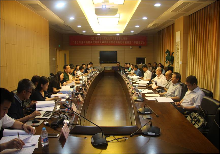 7月8日,由公司球王会经理赵景华教授担任首席专家的国家社科基金重大项目“基于总量与强度双控的水资源治理转型与市场化机制研究”(批准号:15ZDC033)开题论证会在学术会堂603会议室举行。论证专家组由中国工程院院士李京文教授、中国人民大学学术委员会副主任胡乃武教授、北京大学球王会党委书记周志忍教授、中国水利水电科学研究院副总工程师陈敏建教授、北京大学科研部部长周辉教授、球王会体育官方网站科研处处长李桂君教授组成。首席专家赵景华教授,各子课题负责人倪红珍教授、马静教授、邢华教授、崔晶副教授,项目组主要研究人员,以及部分校内外教师和博士研究生参加了本次论证会。
