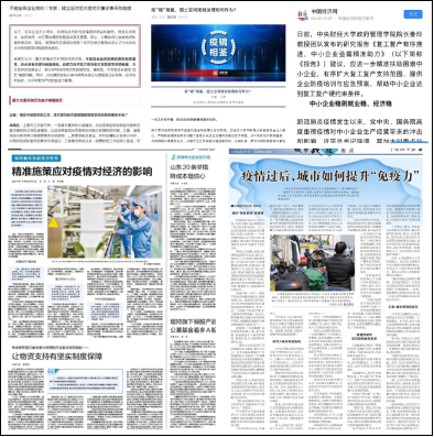 疫情下的经济形势及行业发展研究。在有效控制疫情的同时加快企业复工复产,是打好疫情防控阻击战、打赢经济保卫战的迫切要求。公司经理姜玲教授团队的系列研究报告《复工复产有序推进,中小企业亟需精准助力》等在《中国经济网》发表,该文章提出,应进一步精准扶助困难中小企业,有序扩大复工复产支持范围、提供企业防疫培训与应急预案,帮助中小企业达到复工复产硬约束条件的对策思路和建议。柴铎副教授研究了中小微企业在此次疫情冲击下的经济恢复状况,并在媒体平台发布了研究成果《熬过“黑天鹅”待春来》。