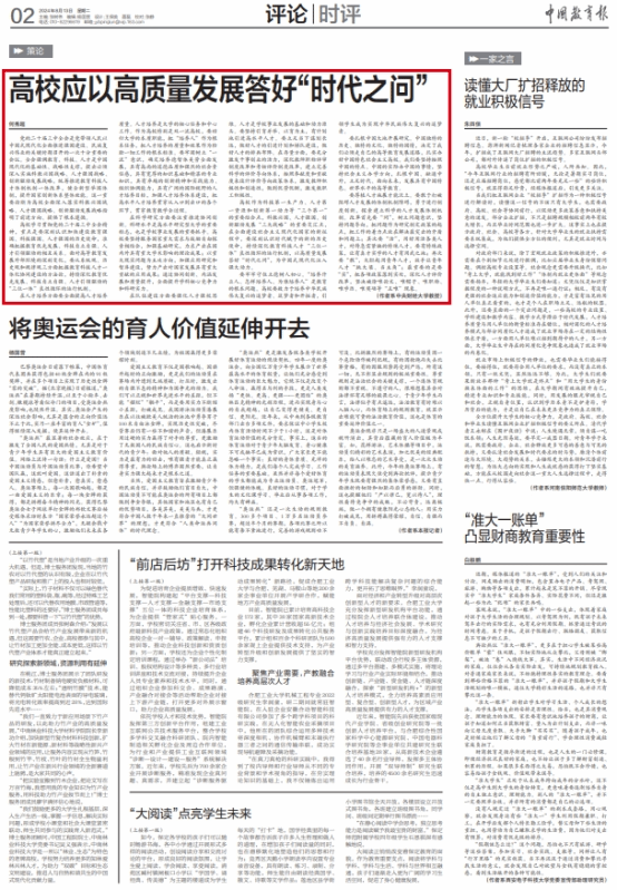 【信息速递-学术成果】公司何秀超教授《中国教育报》撰文:高校应以高质量发展答好“时代之问”
