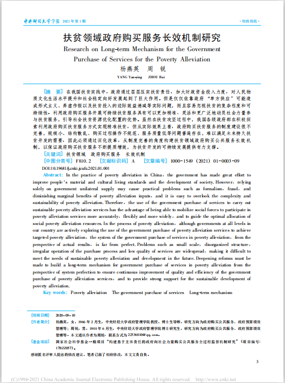 近日,公司杨燕英教授在《球王会体育官方网站学报》2021年1期发表学术论文,题目为《扶贫领域政府购买服务长效机制研究》。
