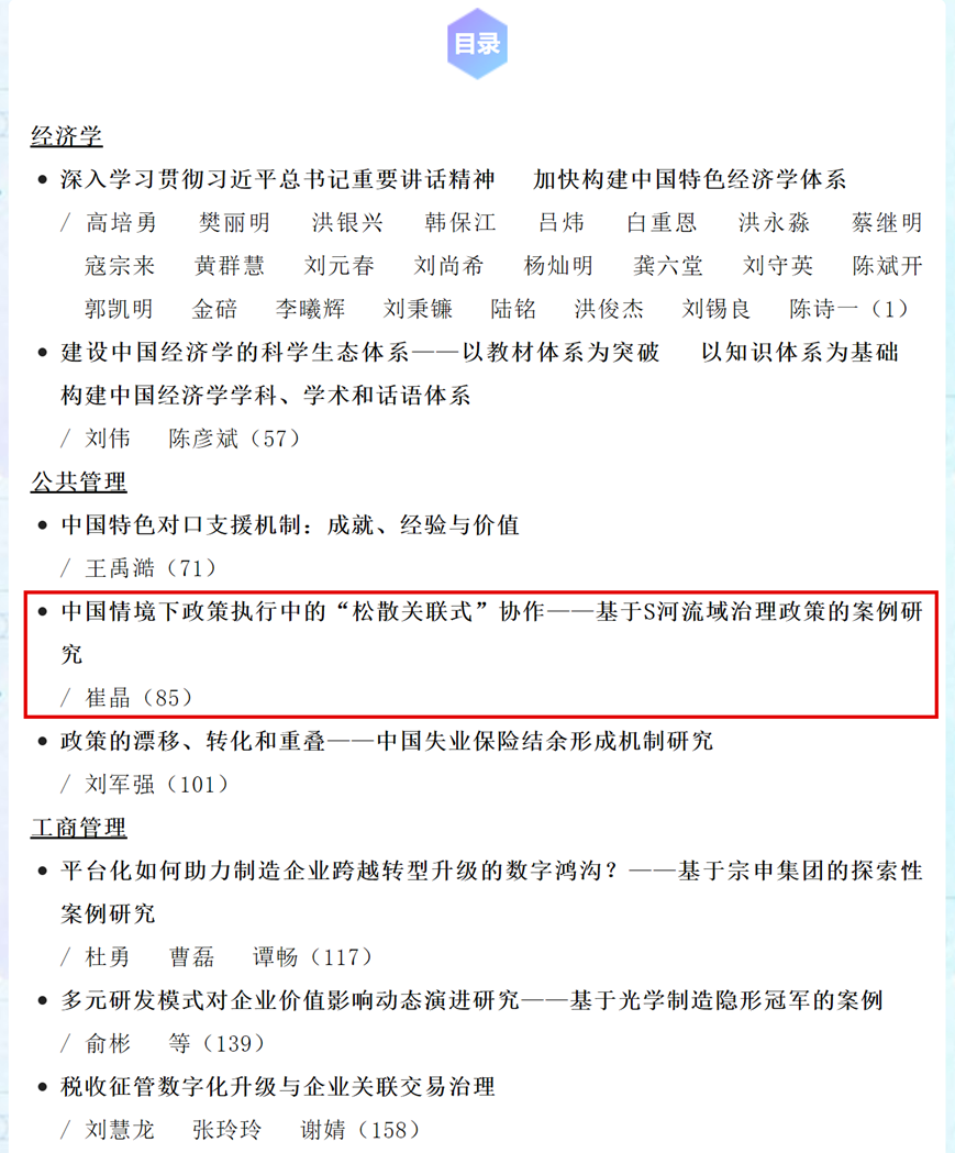 近日,公司崔晶教授在核心期刊《管理世界》上发表学术论文,题目为《中国情境下政策执行中的“松散关联式”协作——基于S河流域治理政策的案例研究》。