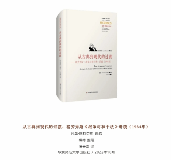近日,公司国际政治系张云雷老师翻译的《从古典到现代的过渡——格劳秀斯《战争与和平法》讲疏(1964年)》一书由华东师范大学出版社出版发行。