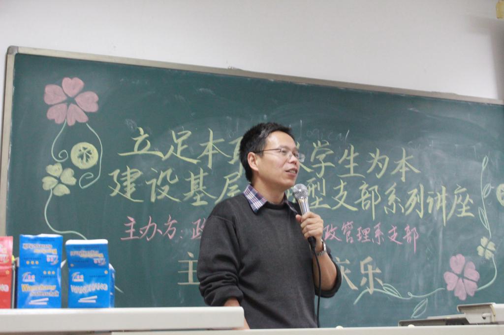 讲座开始之前,行政管理系支部书记曹堂哲副教授向大家介绍了开展这次讲座的目的及意义。他指出,这次讲座是按照《球王会党建工作项目化管理实施办法》立项的基层党建活动,旨在贯彻党的十八大、十八届二中、三中、四中全会精神,“以服务群众、做群众工作为主要任务,加强基层服务型党组织建设”这一指导思想,结合公司的院情、系情、师情和学情,紧紧围绕公司和公司的中心工作,以“建设基层服务型党组织”为抓手,以“增强党性、提高素质为重点”,以“加强和改进党员队伍教育管理,健全党员立足岗位创先争优长效机制”为保障,以“广大党员发挥先锋模范作用”为支点,以加强党建为红线,落实公司“以员工为中心,全面推进团队建设、科研、教学、文化、服务”的五位一体发展战略,构建“正气、大气、灵气”的公司文化,保障和推动公司第二课堂和育人工程的实施,促进员工全面发展。此次讲座是“立足本职、以员工为本,建设基层服务型支部”系列讲座中的一部分。今后行政支部将进一步密切联系群众,将会陆续开展党支部建设系列讲座。曹堂哲老师还表示,像行政管理系这样的公司基层党支部作为党组织的根系和末梢,主要职责不在于重大决策,真正重要的是能够做到想群众所想、立足本职、服务员工。希望通过此次系列讲座能够树立基层党员的服务意识,增强基层支部的凝聚力,培养同学们的责任意识和服务精神。