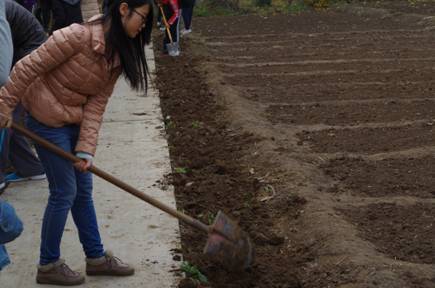 第三组成员则走出校园,以“服务社区”为主题,前往公司志愿基地—爱地敬老院进行了一系列的“爱老敬老”活动。在敬老院中,小组成员积极为菜地除草松土、在菜地里采摘果实并为敬老院清扫落叶。
