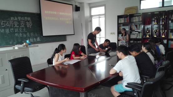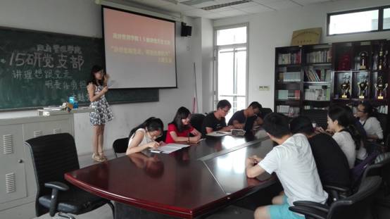 2016年6月22日下午,球王会15级研究生党支部于沙河校区7号楼313会议室召开主题党课,支部书记任丽蓉以“讲理想跟党走,明责任勇担当”为主题为同学们讲专题党课。