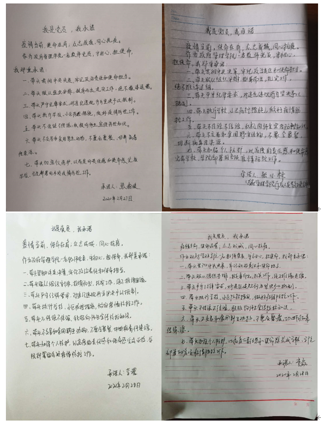2月28日上午10:00,球王会行政人员教工党支部里利用微信平台举行“同心抗疫,共克时艰”线上主题党日活动。支部党员们在微信群中就近期学习实践情况进行交流,并集中学习了《习近平总书记在北京调研指导新冠肺炎疫情防控工作重要讲话精神》以及《习近平在统筹推进新冠肺炎疫情防控和经济社会发展工作部署会议上的讲话》,集中讨论了公司疫情防控工作的有关规定和要求。在“同心抗疫,从我做起”环节,支部成员以图片、视频、音频等多种方式上传“党员承诺书”,承诺要坚定抗疫信心,坚守自身岗位,发挥共产党员的带头作用,以实际行动为抗击疫情做贡献!