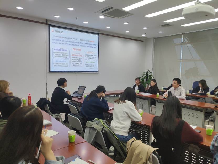 后,我支部与北京市规划委员会经济技术开发区分局副局长周千钧女士进行座谈。周副局长向我们介绍了亦庄经济技术开发区的成立伊始、各个阶段的发展情况、品牌企业发展、开发区在疏解非首都功能战略中的重要作用;她还特别指出,亦庄的无废发展是全国首屈一指的,真正做到了蔡奇书记提出的“宜业宜居”的要求。在介绍后,黄志基老师和随行同学与周副局长就亦庄的未来发展、当地产业情况进行了深入的交流,周副局长表示,将与公司持续保持互动,期待双方能够有下一次深入交流的机会。