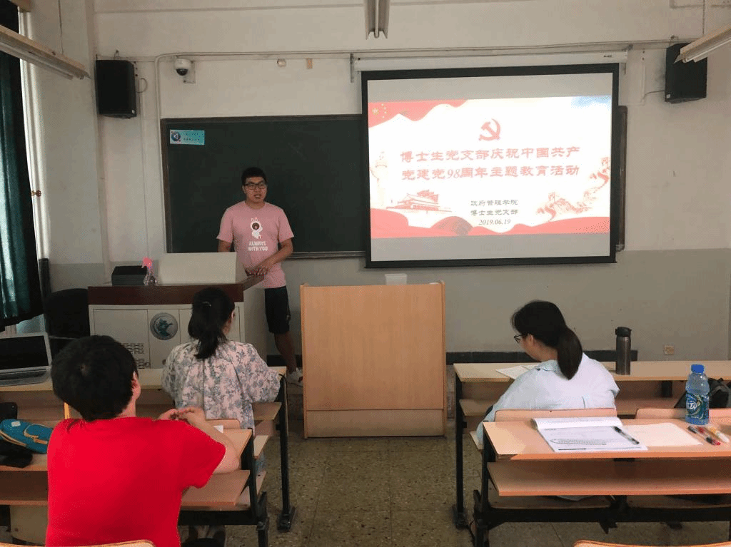 2019年6月19日上午,球王会博士生党支部于教学楼主楼111教室召开庆祝中国共产党建党98周年主题教育活动。