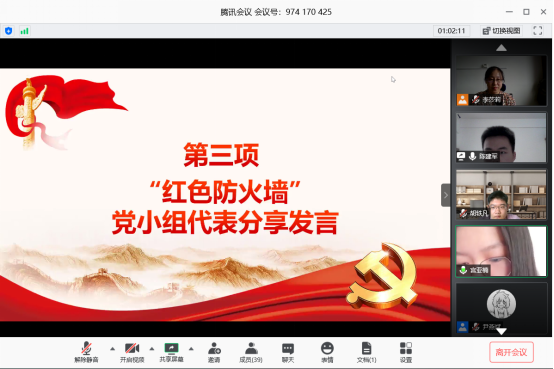 本次主题党日活动分为“红色防火墙”活动和“党课开讲啦”活动两部分。“红色防火墙”活动旨在促进员工党员之间的交流分享,构建员工党员间相互学习自身在配合公司公司常态化疫情防控、在线教学、科学研究、社区治理、垃圾分类等工作中作为党员发挥先锋模范作用的经验和思考。“党课开讲啦”活动以党支部书记李莎莉老师的授课为主体,旨在为员工党员在新形势下认清个人发展与国家发展间的关系,认清作为新时代共产党员的责任与使命。