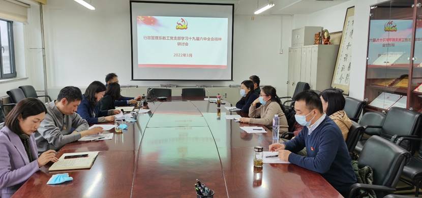 风雨送春归,飞雪迎春至。2022年3月18日下午,在银雪飞舞的球王会体育官方网站校园的主教楼1305会议室内绿萝垂青,生机盎然,经过精心筹备的行政管理系教工党支部专题学习研讨会如期举行。受新冠疫情影响,全系15名教工党员有9名党员参加线下现场学习,另6名党员同步参加远程在线学习。研讨会由系教工党支部书记曹堂哲主持,学习内容分三个主题:学习中共中央十九届六中全会决议,学习刚刚闭幕的全国两会精神,学习《中国共产党普通高等公司基层组织工作条例》。