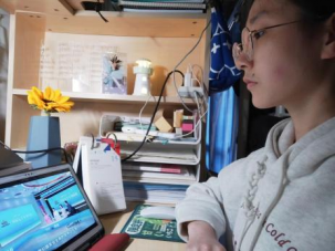 图1 胡立涛同学在家参与国家安全教育课活动 图2 王慕妍同学在家参与国家安全教育课活动