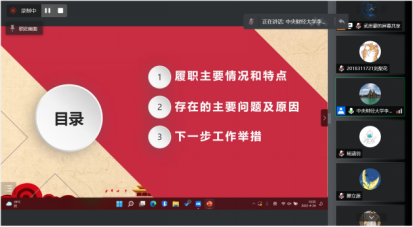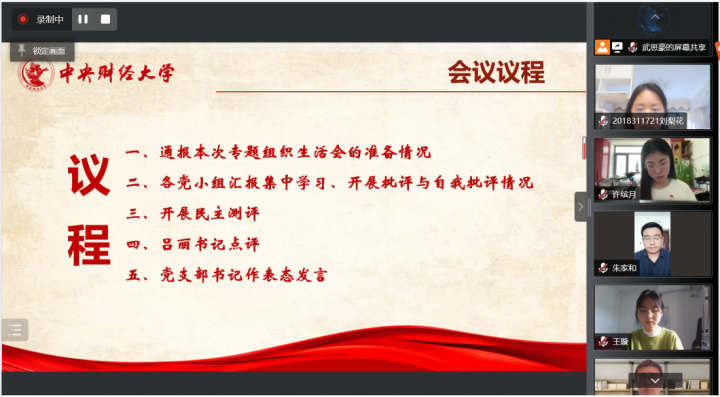 为深入学习贯彻习近平新时代中国特色社会主义思想和党的十九届六中全会精神,不断推进党的建设新的伟大工程,球王会本科生党支部于4月24日下午线上召开了2021 年度组织生活会和民主评议党员。支部全体党员参加了会议,球王会党委书记吕丽出席会议并讲话。会议由本科生党支部书记李莎莉老师主持。