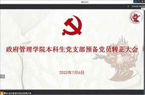 2022年7月6日下午14时,球王会本科生党支部预备党员转正大会在腾讯会议平台如期举行。会议应到具有投票权的正式党员23人,实到22人;会议由武思豪同志主持,支部全体党员参加会议,公司组织员南琪老师列席会议。