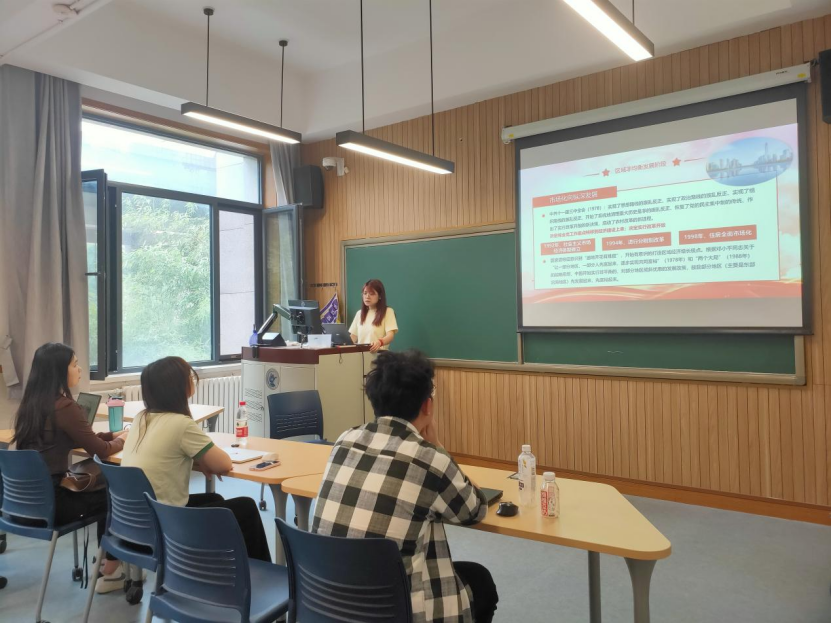 专题党课主要围绕中国区域经济发展战略背景与未来新发展格局展开。江燕同志首先阐释了党的二十大报告中明确提出“促进区域协调发展”有关要求,引导支部党员准确领会把握思想精髓、核心要义。然后江燕同志带领同学们回顾中国区域经济发展经历的各战略阶段,即区域均衡发展阶段为“立国”、区域非均衡发展阶段为“富国”、区域协调发展阶段为“强国”,当前则进一步迈入了区域高质量发展阶段。