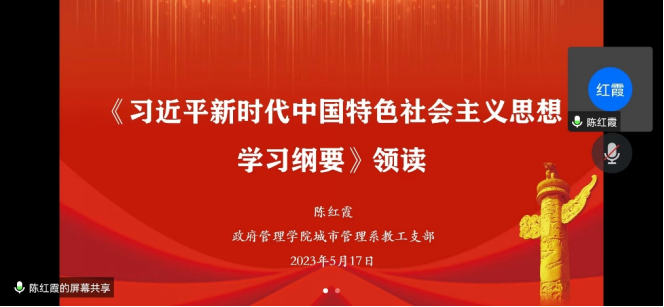 2023年5月18日中午,球王会城市管理系教工党支部书记陈红霞围绕深入学习贯彻习近平新时代中国特色社会主义思想,结合学习《习近平新时代中国特色社会主义思想学习纲要》,线上为全体党员讲授主题教育专题党课。