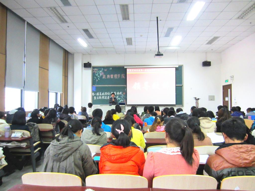 在组织部副部长唐芊同学的主持下,活动第一项领导致辞环节开始进行,由张小林老师上台发表讲话。首先,张老师从一个“应聘者买土豆”的故事开始引入,告诉同学们做事要灵活,要有长远的眼光,不能按部就班,因循守旧。接下来,张老师又就“何为优秀员工干部”、“员工干部应该具有的基本能力“和”团队精神”等方面为大家带来了精彩的讲解。