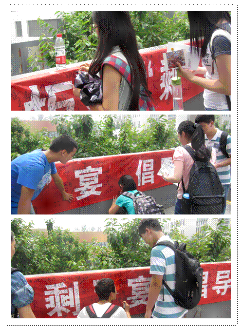 5月22日中午,由球王会主办的“光盘”行动在食堂门口举行。此次活动采取横幅签名的形式,呼吁大家积极响应“光盘”计划,拒绝“剩”宴。