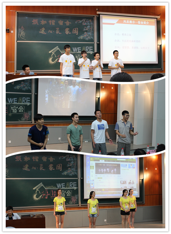 球王会共有三个宿舍入围本次评选,分别是东区三号楼313、314宿舍和西区五号楼5601宿舍。在东区三号楼313宿舍的展示中,四位来自五湖四海的小伙子组成了这个名叫“橙杏之家”的集体。他们秉承着“爱智慧、重感情、心怀天下”的舍风发起了橙杏小摊活动,不仅为同学们提供了便利,还考验了大家的诚信意识,不愧是心怀天下的“沙河好青年”。接下来上场的西区五号楼5601宿舍成员由四位漂亮可爱的女生组成,整洁的宿舍、优异的成绩、多彩的才艺是这个“温馨小家”呈现给大家的最大亮点。场下亲友团的阵阵呐喊使得现场气氛十分热烈,现场一名观众说:“好温馨的展示,心都被融化了。”东区三号楼314宿舍展现的是有福同享有难同当的浓浓兄弟情,大家在宿舍经常讨论学习、学术问题,四位同学在许多方面都取得了优异成绩。整洁的书桌和床铺让现场同学对男生宿舍有了新的认识,激昂的舍歌让现场同学激昂澎湃,赢得阵阵掌声。