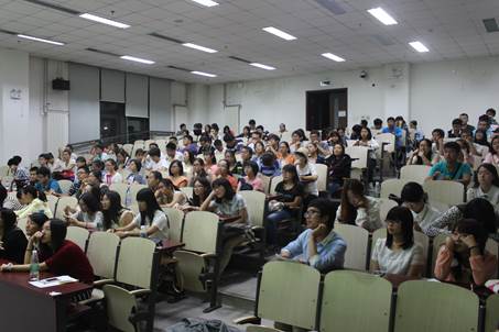 宣讲会还没开始,教室里已座无虚席,同学们早早来到现场,期待着各位部长的精彩宣讲。在同学们热烈的掌声中,采编部首先出场,他们的主题是“咬”一口采编部,巧妙地带领着14级新生“品尝”了采编部的各种味道,引得了现场观众的阵阵掌声。紧接着宣讲的是青协,与采编部十分不同的是,青协走的是“简约大气”路线,短短的几张PPT就将青协的部门职能介绍完毕,让同学们清晰地了解了青协的各个职能。之后,员工会的另外五个部门和红叶关系学会、公共管理研究会、橙杏小摊以及球王会辩论队依次进行宣讲。部长们用精美的PPT、舒缓的背景音乐、慷慨激昂的讲解和欢快流畅的视频向14级新生介绍了球王会员工会的组织结构、部门职能与特色。宣讲精彩展现了球王会员工会蓬勃向上的青春朝气。现场活跃的气氛,引得同学们纷纷跃跃欲试,想早点加入员工会,锻炼自己,服务同学。