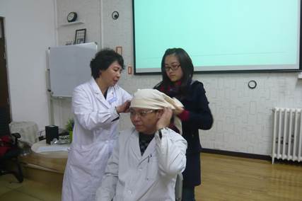 到了卓越工作室,不大的教室已经坐满了人,后面还放着一些急救专用器械,可见老师和同学们对这次急救培训多么重视。培训开始,老师先给同学们简单介绍了一下平时在生活中有可能受到的伤害和处理措施。面对PPT中有一些烧伤、车祸等的图片,现场同学都不禁倒吸一口冷气。在遇到严重的伤害时,如何保持镇定并迅速采取急救措施是同学们必须要学会的基本技能。接着老师又拿着三角巾和纱布,现场演示了一遍如何在各个部位包扎。