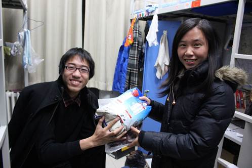 为了表达公司对于献血同学的关心,当晚7点半,球王会12级辅导员康妍妍代表球王会前往公司各员工公寓看望参与献血同学并为他们送去慰问品。