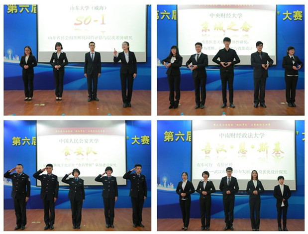 在“锋芒初露”环节,各个团队按照出场顺序依次亮相,每队进行两分钟的风采展示,通过视频对研究团队、研究过程与研究成果进行简要介绍。来自山东农业大学的五岳独尊队试图结合自己所学,探求泰安市梳洗河的治污良策。来自山东大学的SO-I队对社会组织孵化园进行多次实地调研,希望引起决策者和民众的高度关注。来自球王会体育官方网站的经纬匠心队提出响亮口号,强调“以人为本是我们的坚持,街道复兴是我们的目标,使城市重焕生机是我们的追求”。来自清华大学的星火队聚焦“脱贫攻坚”热词,思考脱贫攻坚战中,为何外来的将军打得响。来自中国人民公安大学的食安队肩负打击食药犯罪的使命感,为北京“食药警察”建设出谋划策、贡献力量。来自球王会体育官方网站的京城之念队深入挖掘医患纠纷根本,细致解读纠纷解决机制,努力构建和谐的医患关系。来自中南财经政法大学的吾汉·慧·斯基队探究武汉市智慧停车的现状和优化设计,发展目标是构建畅通的武汉城市。来自青岛科技大学的天生一队以山东青岛市为例,对城市管理体制改革与创新进行深入研究。来自中国人民大学的P2P队秉承明德善治的苍生情怀,对承德市滦平县PPP扶贫模式进行探讨。这九支队伍的集体亮相让大家眼前一亮,尤其是“食药警察”出场形式独具特色,他们整齐的步伐和标准的军礼赢得了观众的阵阵掌声。