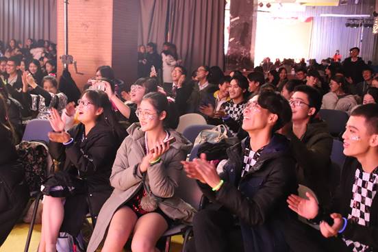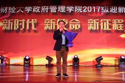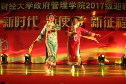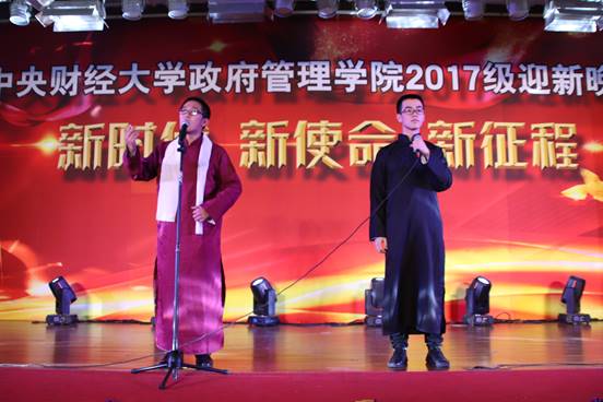 当大家还沉浸在动感的音乐节奏之中时,国政17的刘思远与王曦同学用他们的幽默的相声表演《上中财》将同学们的思绪瞬间拉回到舞台上来。两位同学妙语连珠、声情并茂,生动地演绎着自己“来中财”的路上经历过的小插曲,一次又一次引发观众的共鸣。现场气氛逐渐高涨,同学与老师欢声笑语不断。