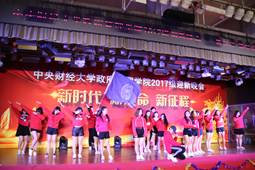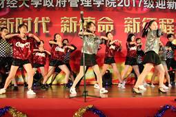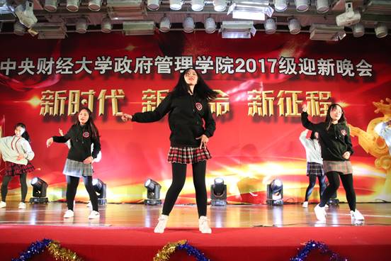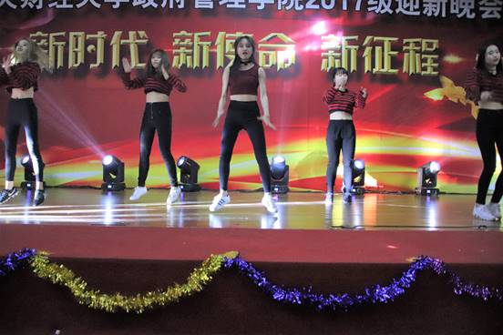 班级风采展示环节暂时先告一段落,2017级政管的新同学也是人才辈出,多才多艺。国政17的李如玉等五位同学为同学们带来了一段精彩的爵士舞表演。伴随着音乐《be your love》,舞台上的她们展现出急促又富有动感的爵士舞技,每一次转动,每一个律动,都尽现她们别样的青春风采。
