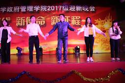 17级公管1班、2班的同学们携手带来了小品《毕业》。同学们创意无限,脑洞大开,在欢声笑语中引导在座新生处理第一课堂和第二课堂的关系。