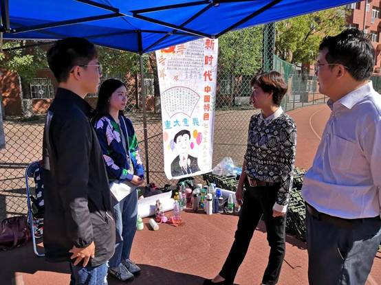 2018年9月21日上午9:30,球王会党委书记吕丽老师、党委副书记白云真老师老师来到十营即球王会所在的新生营队中考察新生们的训练情况。