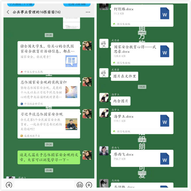 公司统筹党支部、团学组织、班级等工作力量,充分调动师生的积极性、主动性和创造性,把统一组织活动与自主开展活动结合起来,增强宣传教育的吸引力和感染力。师生党支部通过学习强国APP、微信群、线上会议等媒介组织线上“微学习”;公司团委依托公司微信公众号策划推出《国家安全教育日来临,安全达人“速成秘籍”在此!》专题知识问答推送,拟策划向全院团支部开展以“守护国家安全人人有责”为主题的团日活动,旨在向公司师生科普总体国家安全观,教育引导全院师生学习贯彻总体国家安全观,扛起维护国家安全的重任;公司员工会开展了“我与总体国家安全观”线上研讨活动,员工干部们互相交流学习心得,各抒己见,讨论热烈;在班主任、辅导员的指导下,部分班级组织开展了主题“云”班会活动,观看国家安全教育课相关视频,普及国家安全知识及其重要性,集中学习、集中讨论、撰写心得、分享体会,充分调动员工的积极性研讨应如何维护国家安全,增强同学们的国家安全意识。