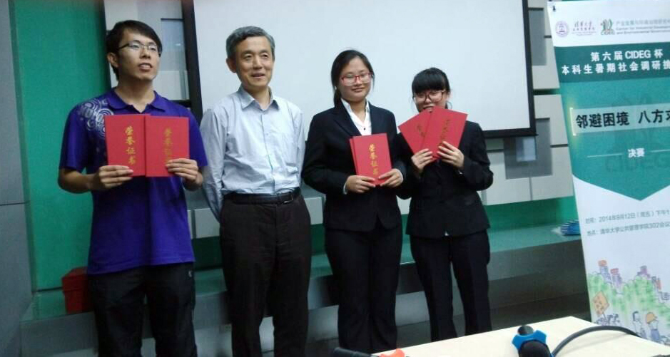 9月12日下午,小组同学赴清华大学公共管理公司参加了此次社会实践挑战赛的决赛。同场竞技的还有来自北京大学、清华大学、山东大学等高校的九支队伍。小组成员通过一个暑假的实地调研及数据分析、报告撰写,运用所罗门四组实验法、相关性检测以及实地调研等方法,顺利完成社会实践,并在赛场上展现出中财学子沉着严谨的独特风范,得到了现场包括安邦咨询高级研究员贺军、香港大学访问学者潘洁等评委老师的称赞和建议。最终经过激烈角逐,小组以总分第三的优异成绩,荣获此次大赛二等奖。颁奖嘉宾为清华大学公共管理公司经理薛澜教授,赛后薛澜经理对小组成员的实践成果进行了高度评价,并指导队员对成果进行完善,以出版成集。