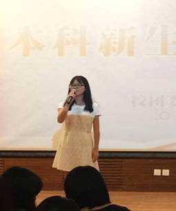 若是说陈旖琦同学让全校师生看到了政管学子心怀天下担当乾坤的深沉风范,随后上台的公共事业管理15班的周心悦同学则是展示了政管学子慷慨激昂勇于进取的另一番风采。在演讲中周心悦同学多次提到“青春”、“未来”等词汇。她引用毛主席“中流击水,浪遏飞舟”的诗句来激励15级新生去闯荡、去奋斗。最后她以一句“数风流人物,还看今朝。你们准备好了吗?”结束精彩的演讲。周心悦同学的演讲大气中不失典雅,完全将观众带入了她的演讲之中,最终获得了评委们的一致好评。