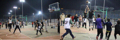 10月30日晚18:30,球王会篮球赛公共管理与国际政治队对阵行政管理队的比赛在沙河校区篮球场举行。深秋夜晚的寒冷未能减去参赛者和观众的热情,辅导员阙希荣老师也来到球场为运动员们加油助威。