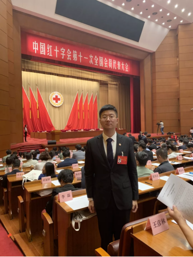经公司红十字会和北京市红十字会推荐,公司辅导员李磊作为北京市唯一一名青少年志愿者代表出席了本次大会,在人民大会堂受到了党和国家领导人习近平、李克强、王沪宁、王岐山等同志的接见;在大会开幕式上,作为红十字志愿者宣读《国际红十字会与红新月运动基本原则》;在9月3日的全体会议中,成功当选中国红十字会第十一届理事会理事,全国共四名青少年代表当选。