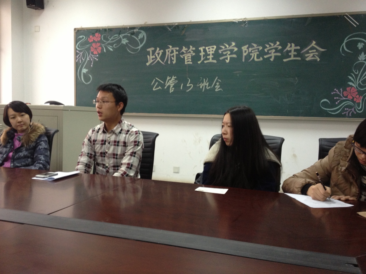 3月3日上午,公管13班在沙河校区公司楼七号楼313室召开了本学期第一次全体班会。班长冯博主持会议,班主任吕阳老师和辅导员孙帮谦出席会议。会议主要对上学期的班级工作进行了回顾总结,并对下学期的工作做了展望。